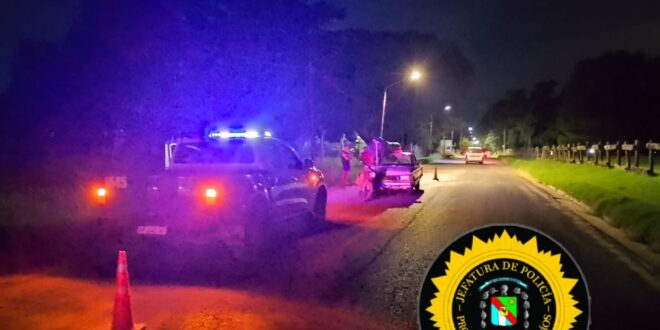 En la tarde de este viernes 3 de abril, el personal de la Comisaría Segunda debió intervenir en un accidente de tránsito ocurrido en la transitada esquina de Suipacha y Bulevar Aráoz. El hecho, que involucró a un automóvil y una motocicleta que aguardaban el cambio de luces del semáforo, dejó como saldo a una persona trasladada al hospital local.