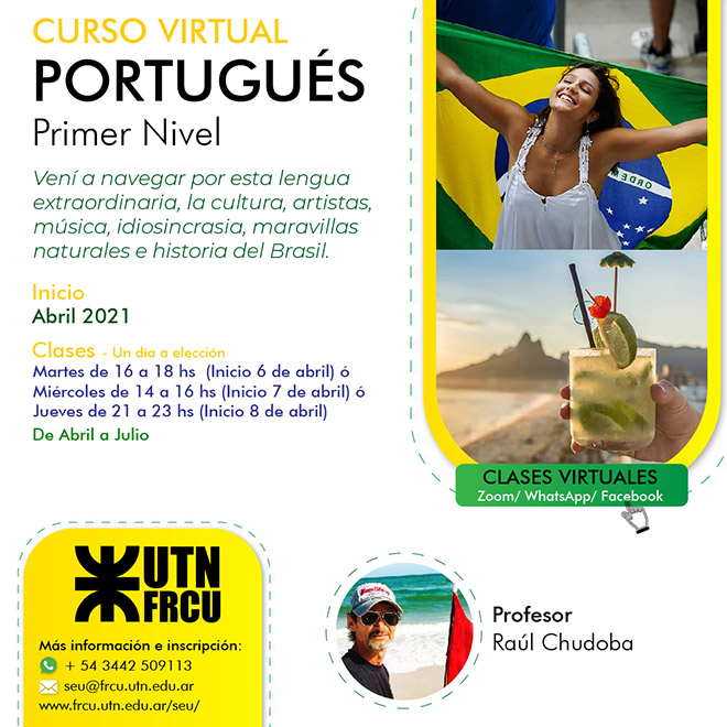 La Secretaría de Extensión Universitaria de la UTN- FRCU informó que se encuentra abierta la inscripción para el curso virtual de portugués-primer nivel, a cargo del profesor Raúl Chudoba.