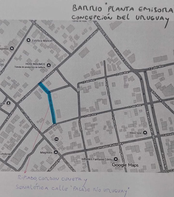 Los vecinos del barrio Planta Emisora están pidiendo reparación de la calle Pasaje Río Uruguay (ex calle pública 513) entre 11 del Norte y Corrientes que se encuentra en un estado intransitable.