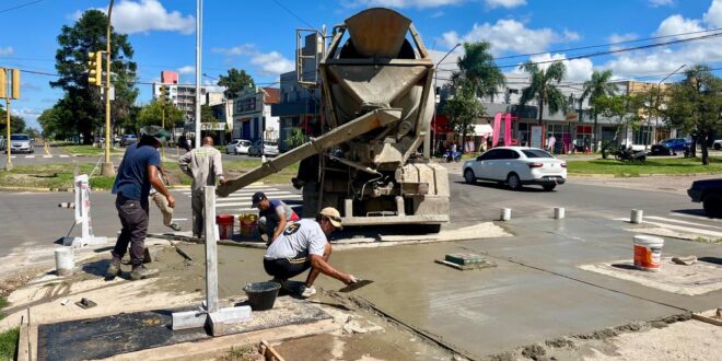 Se desarrolla la obra de terminación de las plazoletas de bulevar Yrigoyen, que comprende el tramo entre Reibel y bulevar Los Constituyentes. Se trata de una inversión municipal de más de 90 millones de pesos y los trabajos están a cargo de la empresa local IQU, adjudicataria del llamado a licitación pública realizado por la Municipalidad.