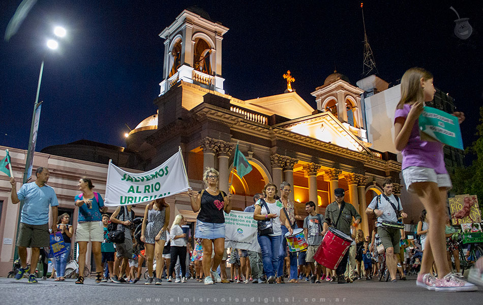 Bajo el lema "Salvemos al Río Uruguay" se realizó este viernes por la tarde la primera concentración y marcha en Concepción del Uruguay. Actividades similares se desarrollaron en otras localidades del Uruguay. Piden además que se involucre a las provincias de Misiones, Corrientes y a Brasil (donde se encuentra la mayor parte de la cuenca del Río de los Pájaros).
