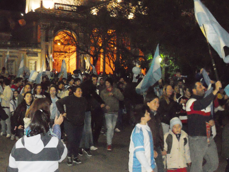 Tras la definición por penales y asegurada la clasificación a la final se desató la euforia uruguayense. Como es tradicional en todo el país, la plaza principal es el epicentro de los festejos. Hasta el Papa Francisco estuvo presente en la Histórica. El Miércoles Digital lo refleja todo. Un 9 de Julio Argentina volvió a una instancia decisiva. El domingo 13 de julio aproximadamente a las 19 se sabrá si otra vez el máximo trofeo vuelve al país tras 24 años, y la plaza Ramírez se tapizará de banderas, bocinas, todo celeste y blanco: ¡ojalá!