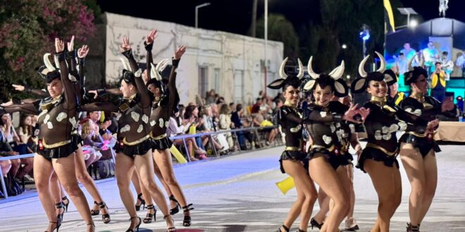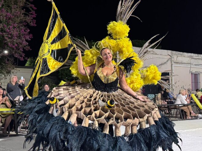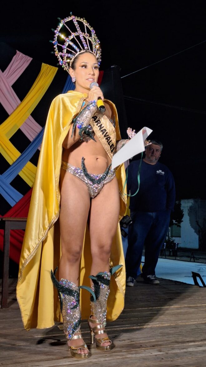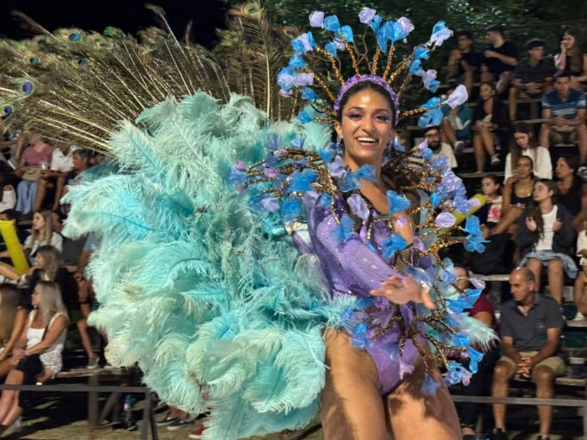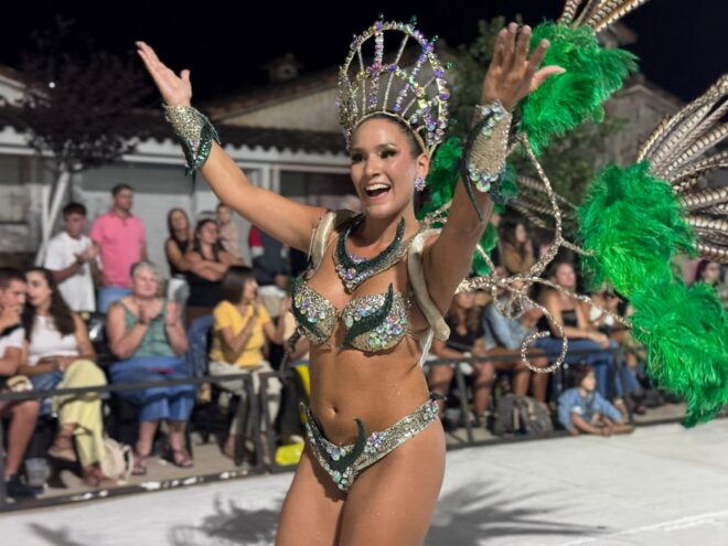 Además, Josefina Mosser de Comparsa “Mi Ilusión” fue coronada como la nueva Soberana de los Carnavales locales, haciendo entrega de los atributos la reina saliente, Carolina Reyna.