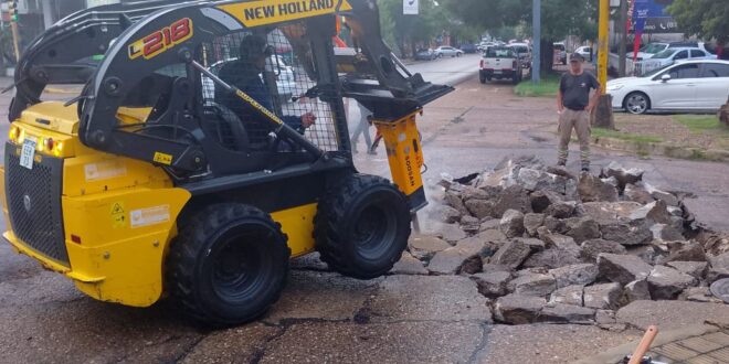 Paralelamente, con equipos propios, el municipio desarrolla una actividad similar en avenidas de asfalto, como los ejecutados en los accesos Juan José Bruno y José Luis Rodríguez Artusi, y arterias del barrio Santa Teresita.