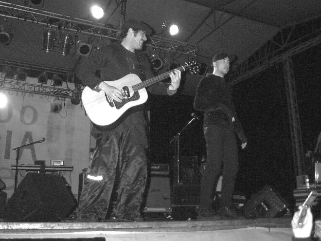 Cuando más temprano la locutora pregunta quién estuvo en Atlético, nadie se acerca al micrófono para hablar del frío de julio que subía desde los pies y el barro colándose por las zapatillas, la llovizna y el viento helado que azotaban campo y tribuna. Nadie va a decir para todos los asistentes a la Fiesta de la Playa que cuando un cana sacó la cachiporra para pegarle a un gurí, Fernando paró todo y le pidió que se la meta en el orto. Que dijo que no, que no se hacía el gallito, porque después cuando bajaba del escenario estaba solo, como registró Javier Kolker en su crónica para el semanario EL MIÉRCOLES hace casi veinte años. Que por eso hicieron “Hechizo” dos veces esa noche, precioso cover de los Héroes del Silencio que tocan también esta noche casi promediando el set (y que Catupecu Machu tiene un don para embellecer las canciones ajenas que reversionan también tendría que decirse).