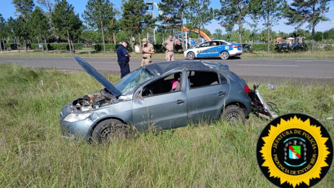 El hecho ocurrió cerca de las 16.30 y personal de la Comisaría Tercera acudió al lugar. En el sitio se constató que un vehículo Volkswagen Gol Trend había volcado luego de que su conductora, una mujer de 30 años domiciliada en la provincia de Buenos Aires, perdiera el control del vehículo.