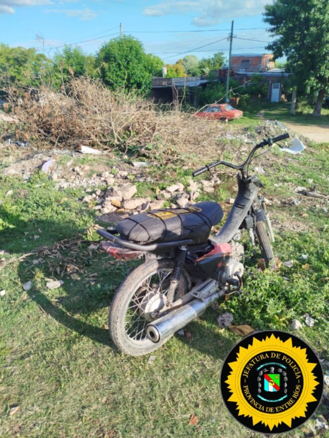 El hecho se registró a las 17.50 cuando la policía acudió al lugar tras ser alertada de que dos hombres que viajaban en una motocicleta habían sufrido una caída y huyeron de inmediato a pie, dejando el rodado abandonado.