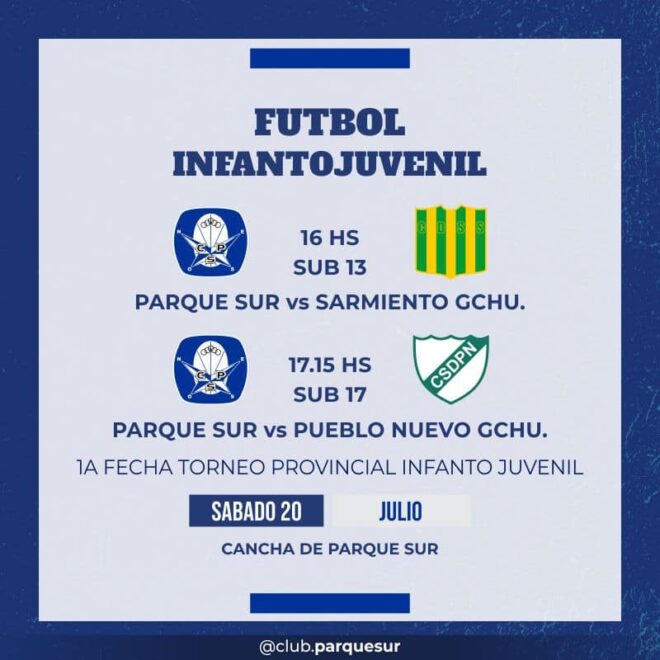 16: Cancha de Parque Sur (Jordana y Defensa Sur). Fútbol infanto jevenil.(Info desarrollada en el siguiente flyer).