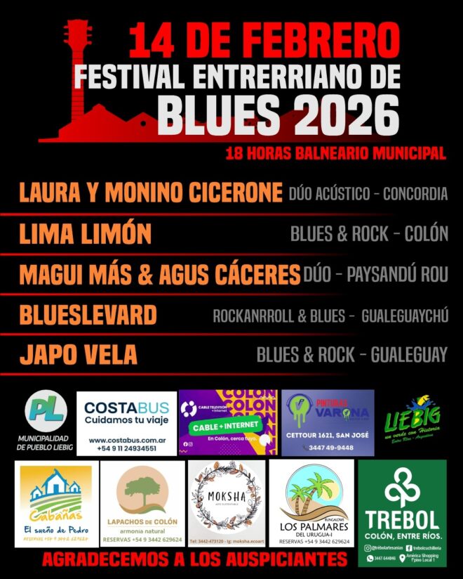 20.30: Balneario-Parque Itapé. Festival de Costa a Costa: Actuarán la Orquesta “De Costa a Costa”, Biondi Muñoz Cuarteto, Los Concepcioneros, Memorias del agua (Paysandú), Los Monchos y Ociel Cettour. (Ver nota).