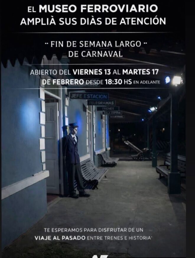 16: Ferroclub Central Entrerriano (Centenario 2200-Villa Elisa-departamento  Colón). Todos los días.  Maquinarias y elementos de época, a las 17 y 19 habrá paseos en el tren histórico turístico para vivir una gran experiencia.Consultas al 3442 551086.