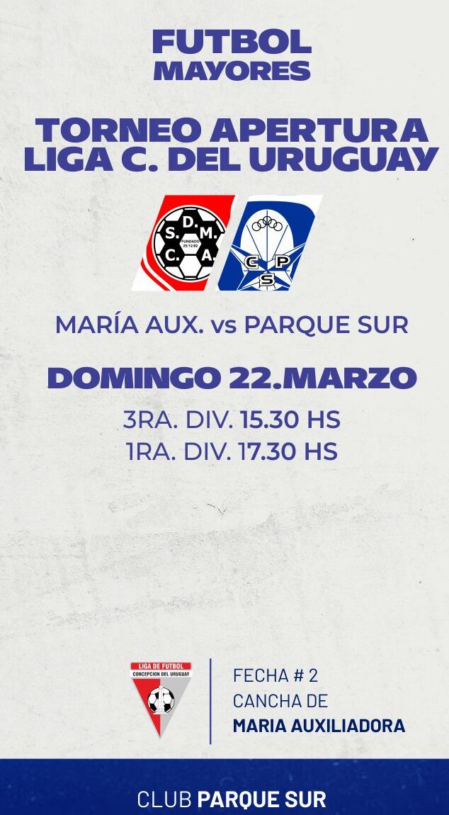 17.30: Estadio de María Auxiliadora “Rodolfo Ortmann”. Fútbol masculino. 1º División. Segunda fecha.