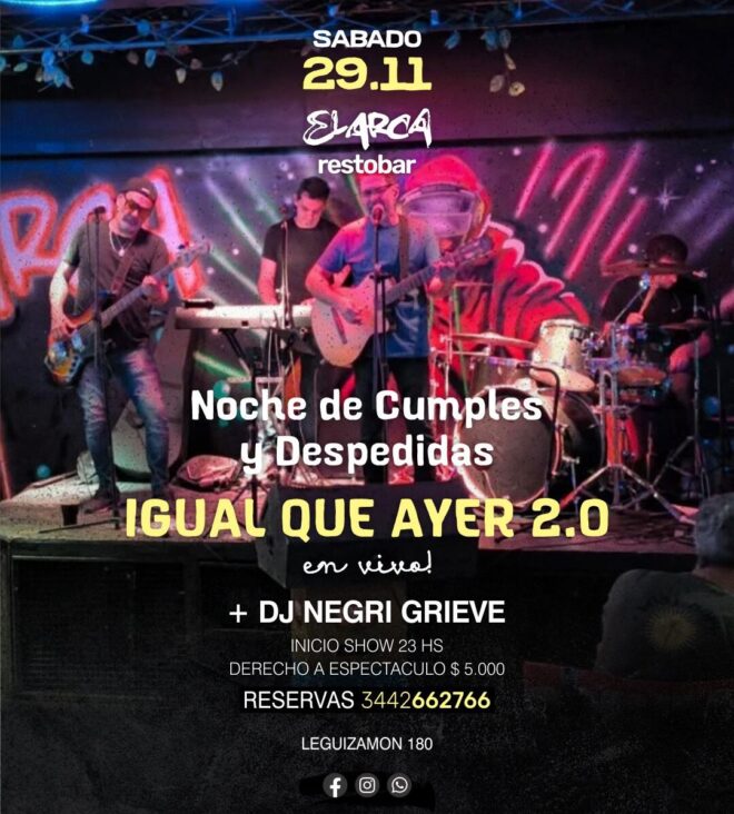 23.30: House Garage (Galarza 1475). Actuación de "Grupo Sentimientos".