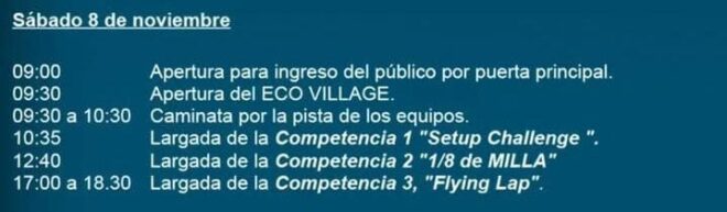 8: Autódromo. Prueba "Desafío ECO YPF". (Ver nota).