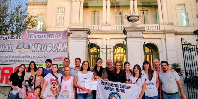 La actividad se desarrolló frente al edificio de la Escuela Normal “Mariano Moreno” y fue convocada por la Seccional Uruguay de Agmer.
