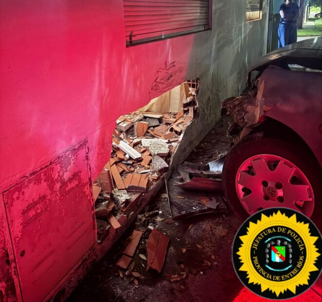 Al lugar acudió personal de la Comisaría Primera, quienes constataron los daños materiales en la vivienda y el vehículo. Ante los signos evidentes de ingesta de alcohol por parte del conductor, se solicitó la intervención de los agentes de Tránsito Municipal para realizar el correspondiente test.