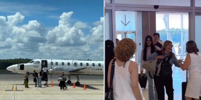 En su cuenta en Instagram, la estación aérea de la capital del citrus publicó un video en el que se observa la llegada del avión, el descenso de algunos pasajeros y posteriormente, ya dentro de las instalaciones aeroportuarias, el abrazo con familiares que aguardaban.