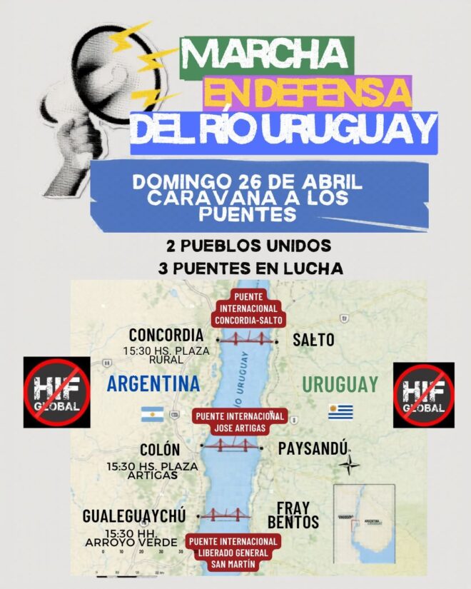 Desde los colectivos Vecinos por los Humedales del Río Uruguay; Grupo Güerta y Energía; Fauna Cultural y Ambiental y Asamblea Ciudadana Ambiental de CdelU, acompañamos y adherimos a la convocatoria de la ciudad de Gualeguaychú al Encuentro Internacional en Defensa del Agua, sumándonos a la movilización que este domingo se desarrollará en las ciudades de Gualeguaychú, Colón y Concordia.