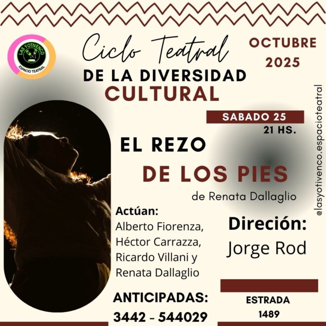 Este sábado 25 de octubre a las 21 en Las Yotivenco espacio teatral (Estrada 1489), llega desde Gualeguaychú la obra teatral "El rezo de los pies".