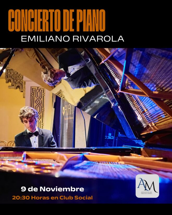 La Asociación Pro Arte Amigos de la Música culmina su Temporada 2025 con un Concierto de Piano a cargo de Emiliano Rivarola, joven y destacado pianista de nuestra ciudad. El mismo tendrá lugar el próximo domingo 9 de noviembre a las 20.30 en el Club Social (San Martín 735). El repertorio incluirá importantes obras de Haydn, Beethoven, Chopin y Ginastera.