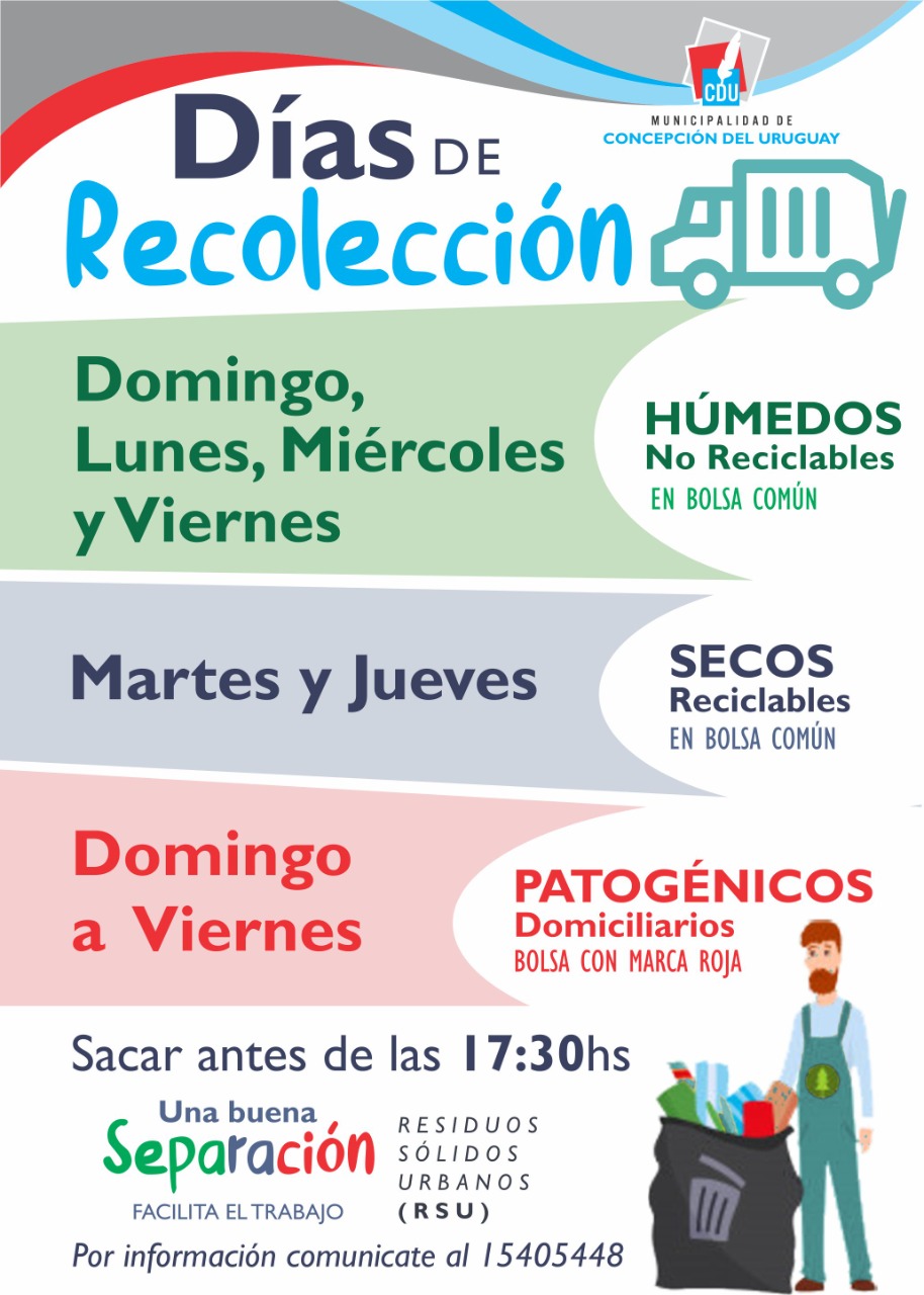 Residuos domiciliarios patogénicos: deben ser colocados en bolsa con marca roja y serán recogidos de domingo a viernes. Se trata de elementos cortopunzantes como jeringas y termómetros; agentes patógenos que son restos de higiene, es decir toallitas, tampones, papel higiénico, gasas, vendas, algodón, cotonetes y curitas. Se incluyen también colillas de cigarrillos y cenizas; y pastillas o antibióticos vencidos.