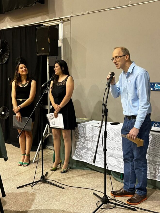 Entregaron reconocimientos a docentes y a todos los rectores que formaron parte de la historia de la escuela desde su fundación. Uno de los momentos más conmovedores fue el homenaje al profesor Daniel Gering, en agradecimiento por su trabajo y dedicación permanente durante estos 25 años en la escuela.