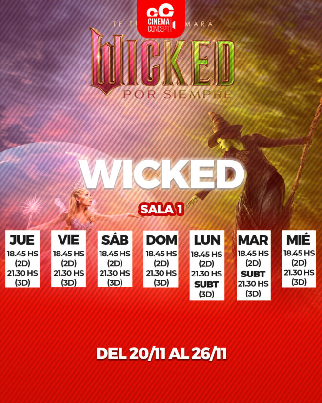 21.30: Wicked: Por Siempre | 3D Castellano (Lunes función subtitulada).
