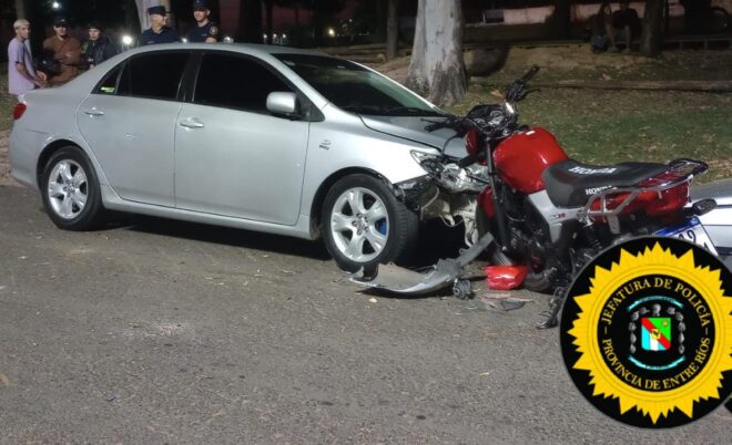 Un siniestro vial de gravedad se registró esta madrugada en el centro de la ciudad, donde una motocicleta impactó contra un automóvil que funciona como remis, dejando al conductor del bi-rodado con lesiones graves.