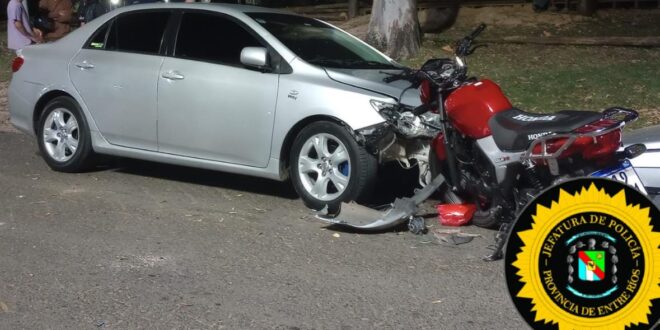 Un siniestro vial de gravedad se registró esta madrugada en el centro de la ciudad, donde una motocicleta impactó contra un automóvil que funciona como remis, dejando al conductor del bi-rodado con lesiones graves.