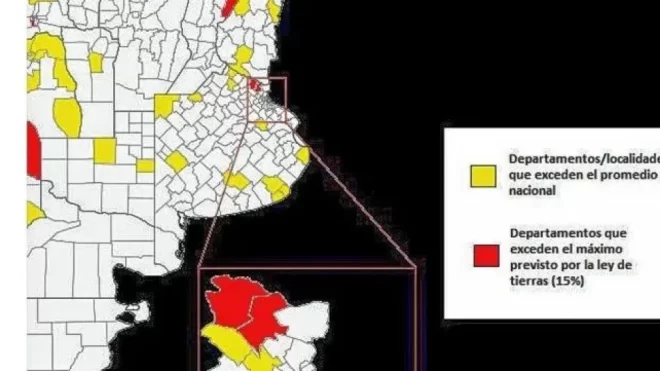 En Entre Ríos, tres departamentos superan el promedio nacional del 5%. Se trata de La Paz, con un 9%, lo que equivale a 56.636,41 hectáreas en manos de extranjeros; Gualeguay, también con un 9%, que representa 57.043,59 hectáreas extranjerizadas; y Concordia, con un 6%, es decir, 17.864,55 hectáreas.