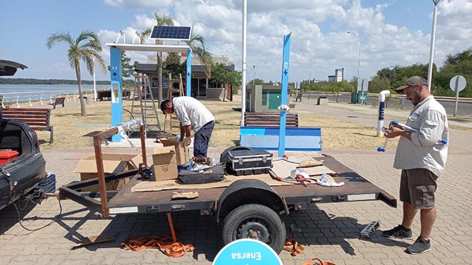 En este sentido, esta primera estación, fue instalada por la Empresa de Energía de Entre Ríos (ENERSA) en el sector Norte de la Isla del Puerto.