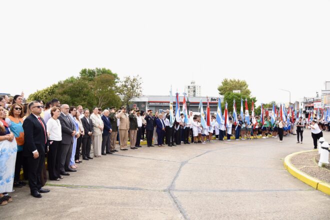 Allí, el acto estuvo encabezado por el intendente, José Lauritto; junto a la viceintendenta, Rossana Sosa Zitto; la diputada nacional Marianela Marclay; el diputado provincial Yari Seyler; demás autoridades; ex combatientes y familiares; participaron más de 300 alumnos abanderados y escoltas de establecimientos educativos, del Ejército y de las Fuerzas de Seguridad, junto a la comunidad que quiso -una vez más- reconocer a los hermanos argentinos que participaron del conflicto bélico.