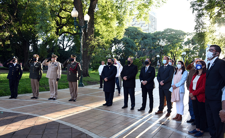 Ya este sábado y tras el izamiento de la bandera argentina en Plaza Ramírez, en la mañana se realizó la ceremonia central en el Monumento a los Caídos en las Islas Malvinas, inaugurado por la Municipalidad en 1983.