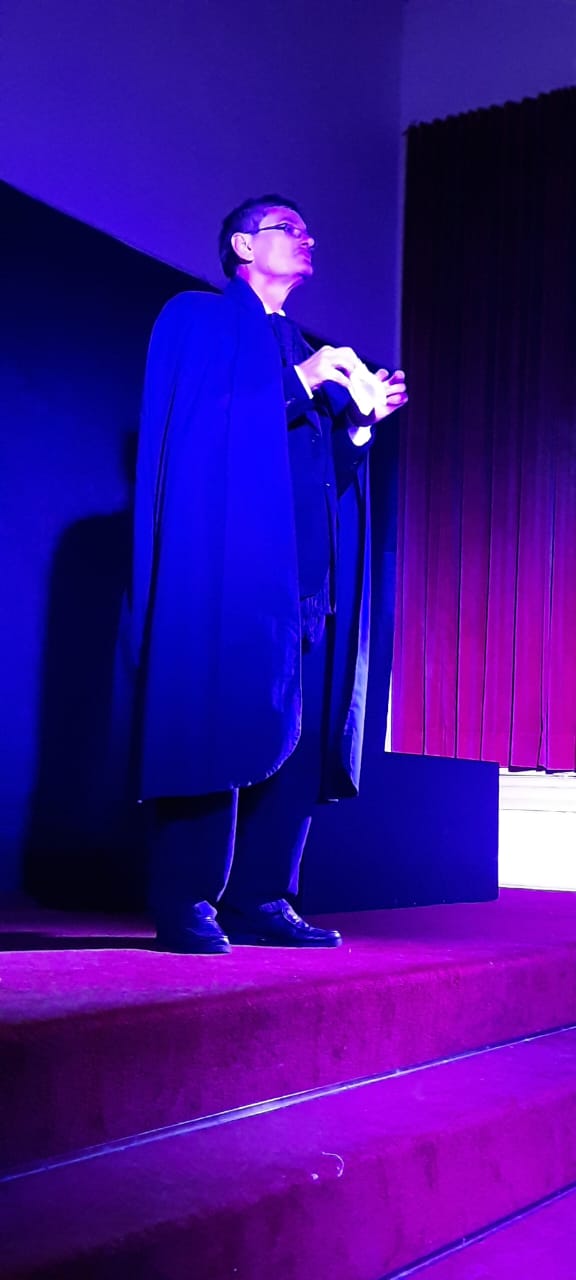 Luego es Antonio Vivaldi –otra vez en formidable interpretación de Zelayeta, el decano actoral del grupo– quien recorre su obra y sus motivaciones: otro sacerdote rebelde a su modo, que percibe la grandiosidad de la creación y la transforma en belleza musical y culmina sus días incomprendido y en la pobreza, pero no reniega del legado maravilloso que dejó a la humanidad, que no se reduce a las Cuatro Estaciones (seguramente su trabajo más conocido). Por algun extraño modo, fue recién en ese momento que el público comprendió que cada monólogo, era una pequeña obra que rastreaba las “Huellas” dejadas en el tiempo por estas personas de tamaña estatura, y entonces empezó a coronar con sinceros aplausos cada uno de esos actos. Vino después el majestuoso Oscar Wilde, esta vez interpretado por Bernardo Farías, para repasar no solo su obra literaria como escritor, poeta y dramaturgo (autor de textos tan célebres como El fantasma de Canterville o El retrato de Dorian Gray) sino también su escandaloso amor llevado a juicio por su propia soberbia, al acusar de difamación al padre de su amado amante Alfred Wilson. Ese fue el inicio de la caida de Wilde, cuya genialidad aún hoy es causa de asombro.