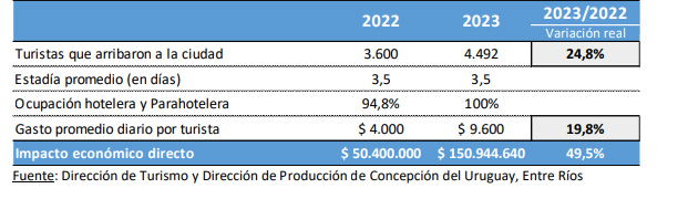 "El primer fin de semana largo del año fue récord para la ciudad: entre viernes y martes 4.500 turistas eligieron Concepción del Uruguay como destino, 24,8% más que el mismo feriado del año pasado, y gastaron $151 millones entre alojamiento, comidas, transporte, compras y recreación. Lo que se gastó fue, a precios reales, 49,5%