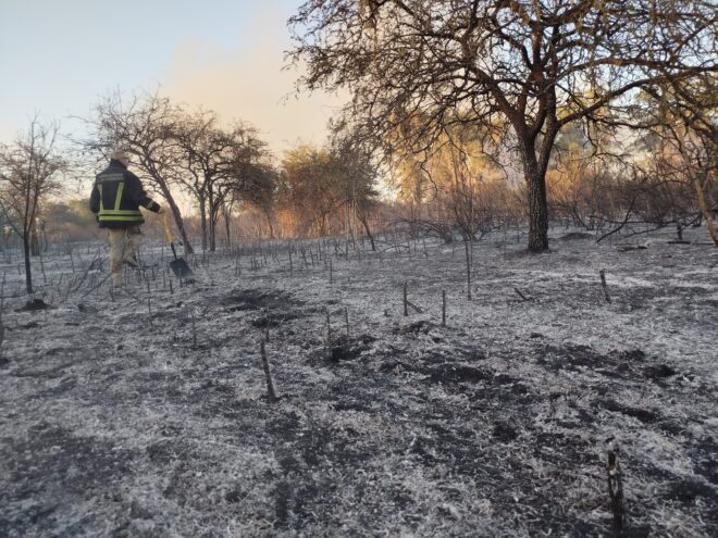Los bombeos debieron arriesgarse y entrar a campos con chircas de 2 metros de alto, con mucha carga de fuego,luego de 3 horas de larga y extenuante tarea lograron extinguirlo en su totalidad.