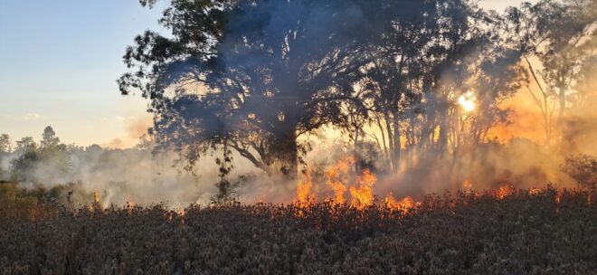 Este sábado 31 de enero a las 17.30 una persona no tuvo mejor idea que ponerse a quemar basura en el sector de los eucaliptos en la zona de un campo en cercanías del hipódromo de Concepción del Uruguay.