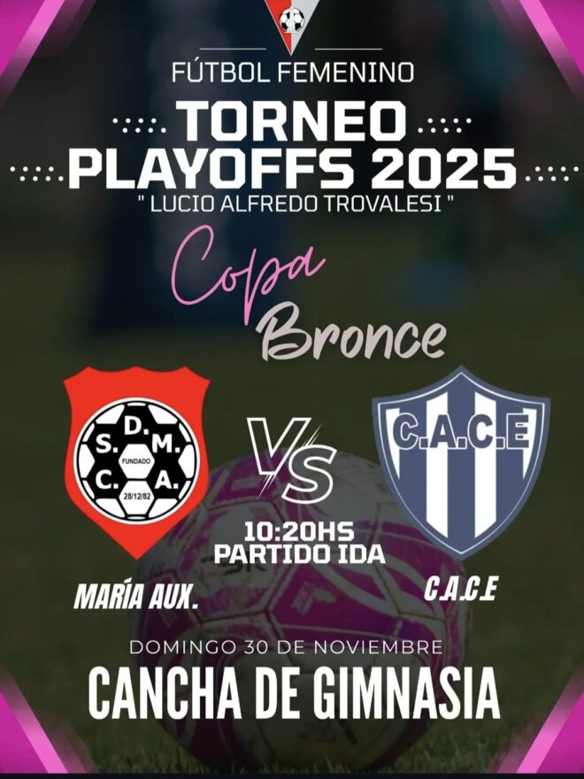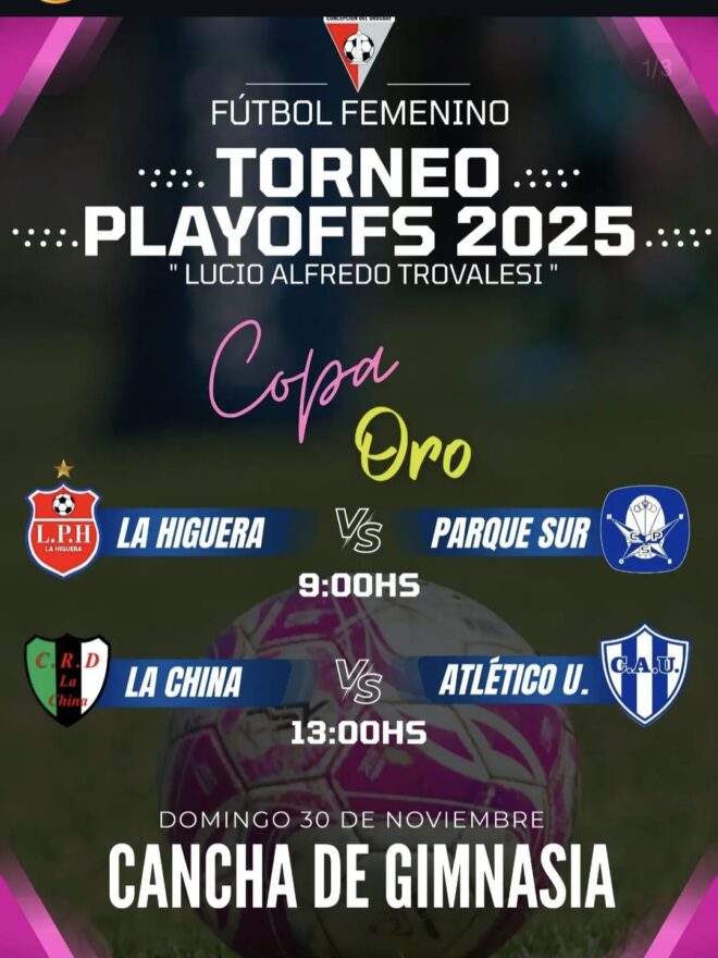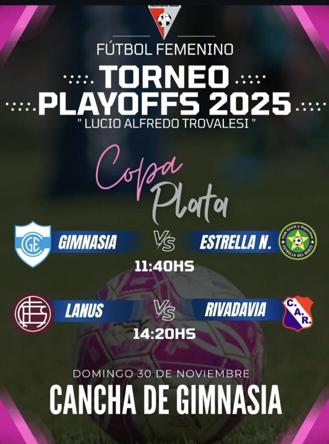 11: Estadio de Rivadavia (Lorenzo Sartorio 1320). Fútbol masculino. Cuartos de final copa de la B. 11: Sporting C. vs Dep.municipal; 12.20: San José vs Atlético C; 13.40: San Roque vs San Martin (Copa Bronce); 15: Racing Pv vs La Higuera;16.20: Def. Talita vs Deportivo C.