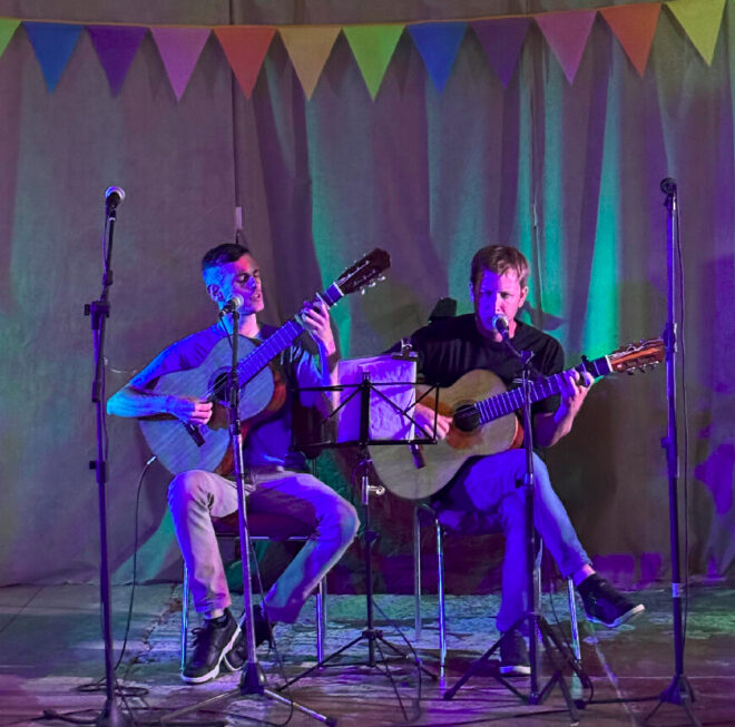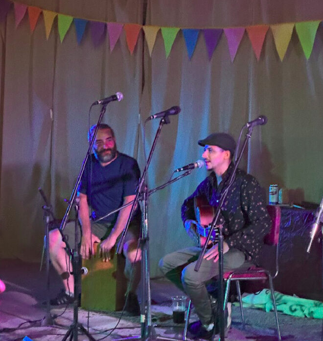 La cuerda de candombe Tarikitaki, con su deslumbrante ritmo que invita a acompañar o a bailar; el dúo que conforman Joaquin Rossier y Bruno Zuluaga, recorriendo con alta calidad la obra de referentes del canto popular rioplatense, como los Olimareños o el Sabalero; otro dúo, el de Emi Giménez en voz y Juan Truffa en guitarra, con temas propios de hechura tan atractiva que el público terminó coreando o siguiendo el ritmo con sus palmas como si ya los conociera; el debut de una banda colonense de murga canción, “Pocas muchas cosas”, que confesó su emoción por ser desde hace mucho “seguidores de los Puntuales desde la tribuna” y ahora estar compartiendo escenario; y músicos de un nivel superlativo como Marcelino Wendeler, Diego Gianera y Raúl Bustos, que se prendieron en diferentes momentos con interpretaciones muy sentidas.