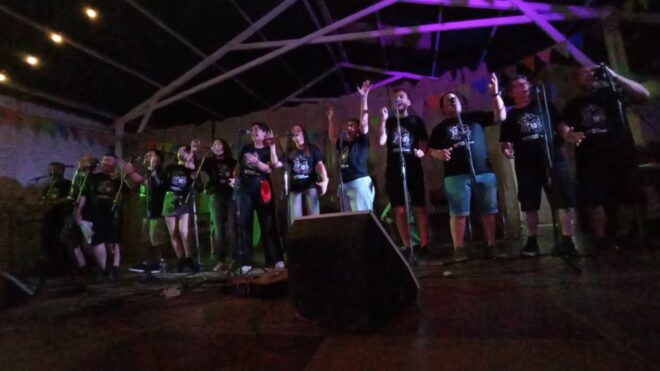 El plan era sencillo y potente: divertirse cantando, escuchar buena música, celebrar con artistas amigos, “mimar” a seguidores de la murga con regalitos que se sorteaban, y amanecer abrazados en el disfrute del arte popular en un repaso de saludos, cuplés y retiradas de la murga desde sus propios inicios, allá por 2007.