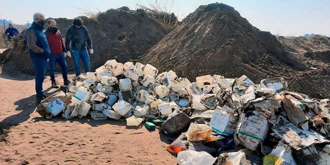 A partir de una denuncia recibida a fines de agosto en la Dirección de Agricultura de La Pampa, se realizó un amplio operativo del que formaron parte la Subsecretaría de Ambiente de la provincia, la Justicia y la Policía, en el que se desenterraron una gran cantidad de bidones de agrotóxicos, algunos vacíos y otros con contenido.