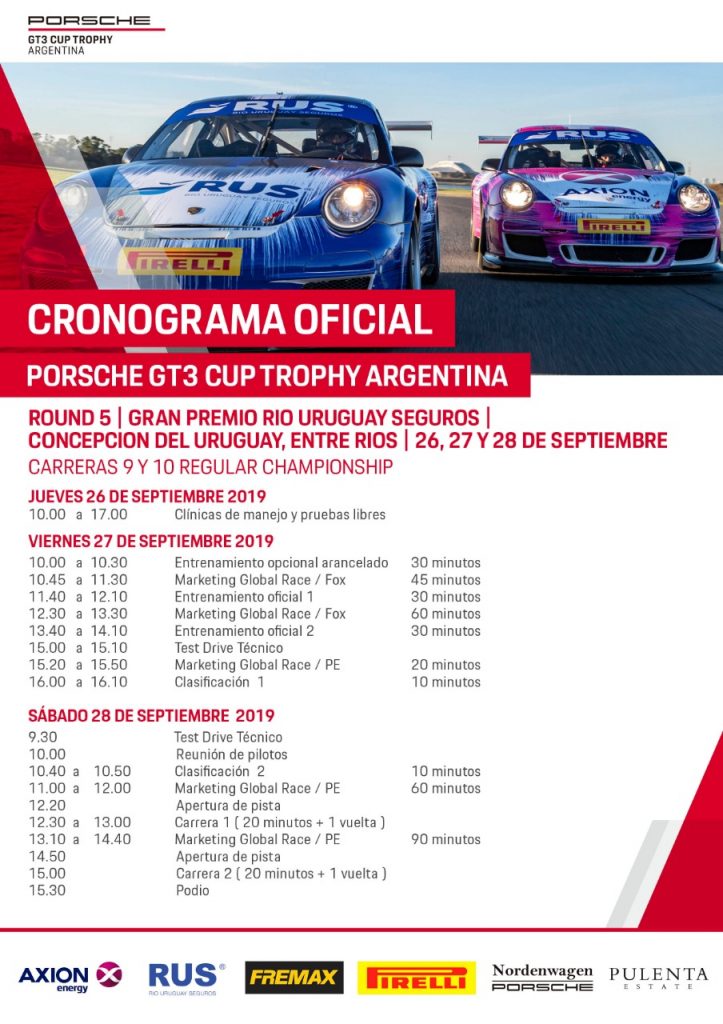 "Sin precedentes en nuestro escenario, esta prestigiosa categoría a la altura de las mas veloces del país con autos importados de la marca Porsche con motores Boxer que erogan, nada menos, que 450 caballos competirá los días viernes y sábado 27 y 28 de septiembre para desarrollar el Gran Premio Río Uruguay Seguros" informaron desde Prensa del autódromo.