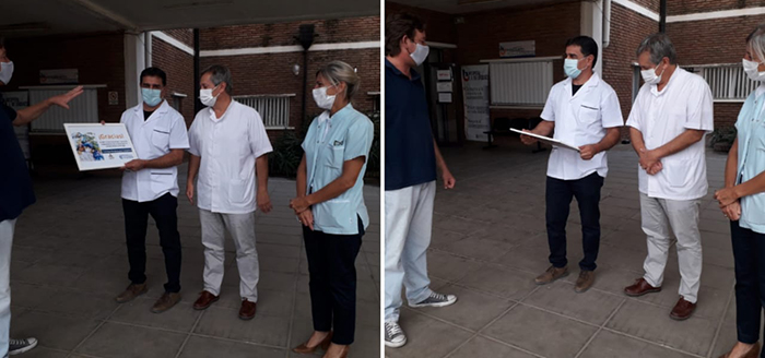 Entregan un cuadro conmemorativo en cada hospital público de la provincia. En Concepción del Uruguay lo hicieron con el hospital Justo José de Urquiza. El director Pablo Lombardi, al jefe de enfermeros Darío Mette y a la secretaria técnica Vanina Politti, lo recibieron en nombre de las y los trabajadores de la salud de La Histórica, “ante la enorme batalla que día a día están dando incansablemente desde el inicio de la pandemia”.