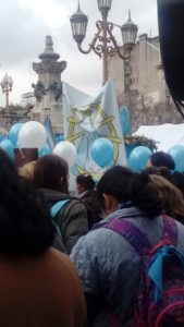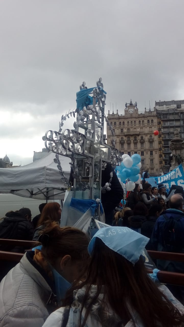 Una gruesa llovizna acompaña la tarde gris con trece grados de temperatura en la plaza de los dos Congresos. La misma está dividida con vallas con ambos sectores separados,  mucha afluencia de simpatizantes de la postura pro vida de un lado y en la Avenida de Mayo militantes a favor del proyecto IVE (interrupción voluntaria del embarazo).