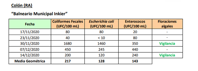 En el caso de las playas colonenses prácticamente se triplicaron los guarismos con respecto a los enterococos, que pasaron de 47 a 143, desde el 30 de noviembre hasta el 14 de diciembre.
