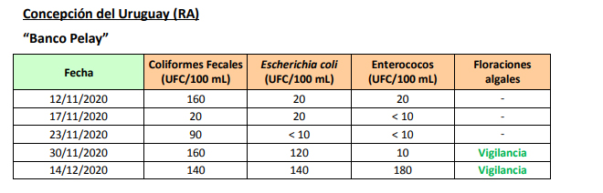 El 18 de diciembre, a través del programa de vigilancia de playas del Río de los Pájaros, la Comisión Administradora del Río Uruguay (CARU) hizo pública la información sobre la calidad del agua en cada una de las playas monitoreadas en la temporada estival 2020-2021. (Ver valores…).