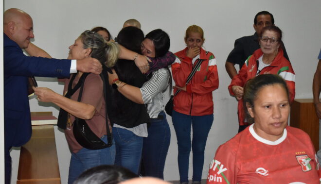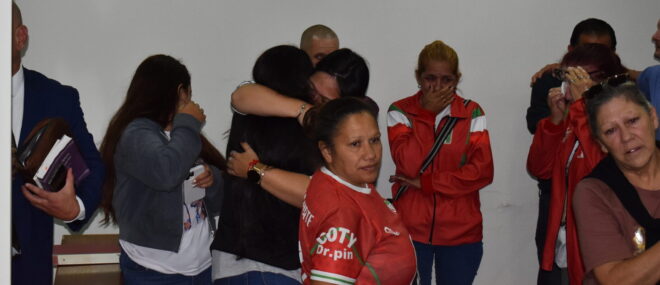 En ese instante Nélida Lorena Dubini (madre de Brian y Lucas Izaguirre); María de los Ángeles Benítez y Roberto Gustavo Rossi (padres de Axel Rossi); y María Cornelia Jaime y Ramón Donato Almada (padres de Leonardo Almada), no ocultaban sus lágrimas y mostraban gestos de conformidad como alivio.