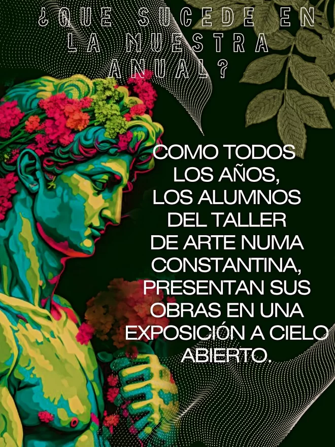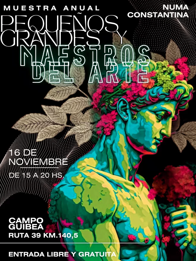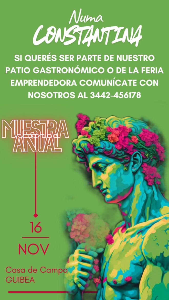 El domingo 16 de noviembre se realizará la séptima edición de la muestra anual de los talleres de arte "Numa Constantina" a cargo de Lucía Díaz. Las sedes donde se dictan las clases de arte son en las ciudades de Concepción del Uruguay y Caseros (departamento Uruguay).
