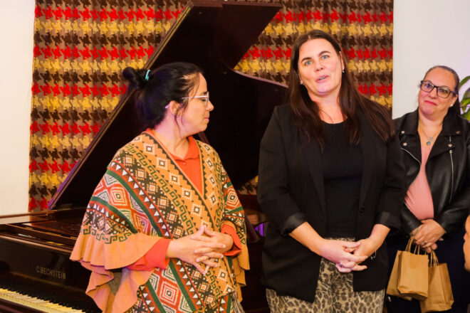 Tras la finalización, Lourdes Pralong coordinadora de Rectorado en La Histórica, junto a la Vicedecana de FHAYCS, Virginia Biorda y la Directora de la Escuela de Música, Natalia Francisconi entregaron presentes a los concertistas y agradecieron a cada una de las partes involucradas que hicieron posible “Piano Adentro” en nuestra ciudad.