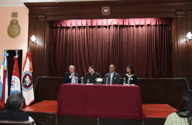 Allí, la mesa estuvo encabezada por el intendente, José Lauritto; el rector, Ramón Cieri; la vicerrectora del turno mañana, Valeria Mercado; y Federico Brugaletta, editor del libro.