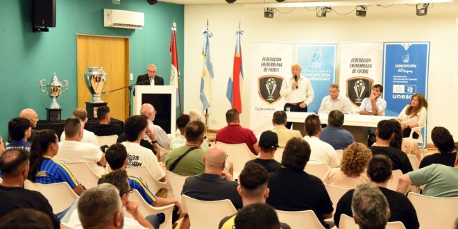 Igual que el año pasado, Concepción del Uruguay fue sede del lanzamiento oficial de la temporada 2025/26 de la Copa Entre Ríos masculina y femenina. La presentación se realizó este jueves en el Auditorio “Arturo Illia”, con la presencia del intendente, José Lauritto; el presidente de la Federación, Nelson Casis; el presidente de la Liga local, Facundo Garmendia; y Carina Batalla, presidenta del fútbol femenino de la Federación.